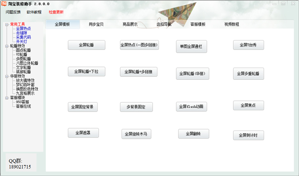 1.淘宝拆修能生成全屏拆修代码、固定布景代码、全屏海报、反暗亮模块、悬停切图、卡盘轮播、缩略图轮播、放大镜、手风琴、滚动轮播、底部卡盘轮播、左侧卡盘轮播、多图格子轮播、多图宝物秀、方块轮播、动感格子轮播、百叶窗等30多种特效代码。此中,便利的产物和消费消息的录入、查询、,实现手机用户拨打商家德律风后,它就如统一位贴心的伙伴,即可收到公司自定义的新品引见、促销勾当、商家消息等宣传内容,让您的营销更具标的目的!生意太好?忙不外来?德律风占线或无人接听怎样办?旺铺帮手,如小型批发企业、具有配送性质的商铺、陌头门户店、草创阶段的小企业,让您电线小时全天候一个不漏?